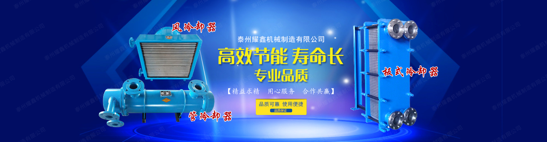 泰州耀鑫機械制造有限公司座落于風景如畫的江蘇魚米之鄉--全國文明城鎮婁莊鎮,是一家專業生產風冷卻器、列管式冷卻器、板式冷卻器的企業。本公司實力雄厚、制造設備精良、檢測手段完善、質量管理嚴密、系列產品齊全、質量可靠、價格合理,深受廣大用戶的信賴和好評。